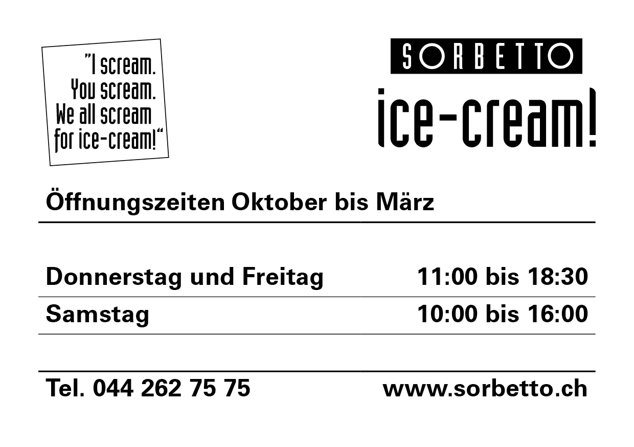 Telefon 044 262 75 75 oder per E-Mail: info@sorbetto.ch